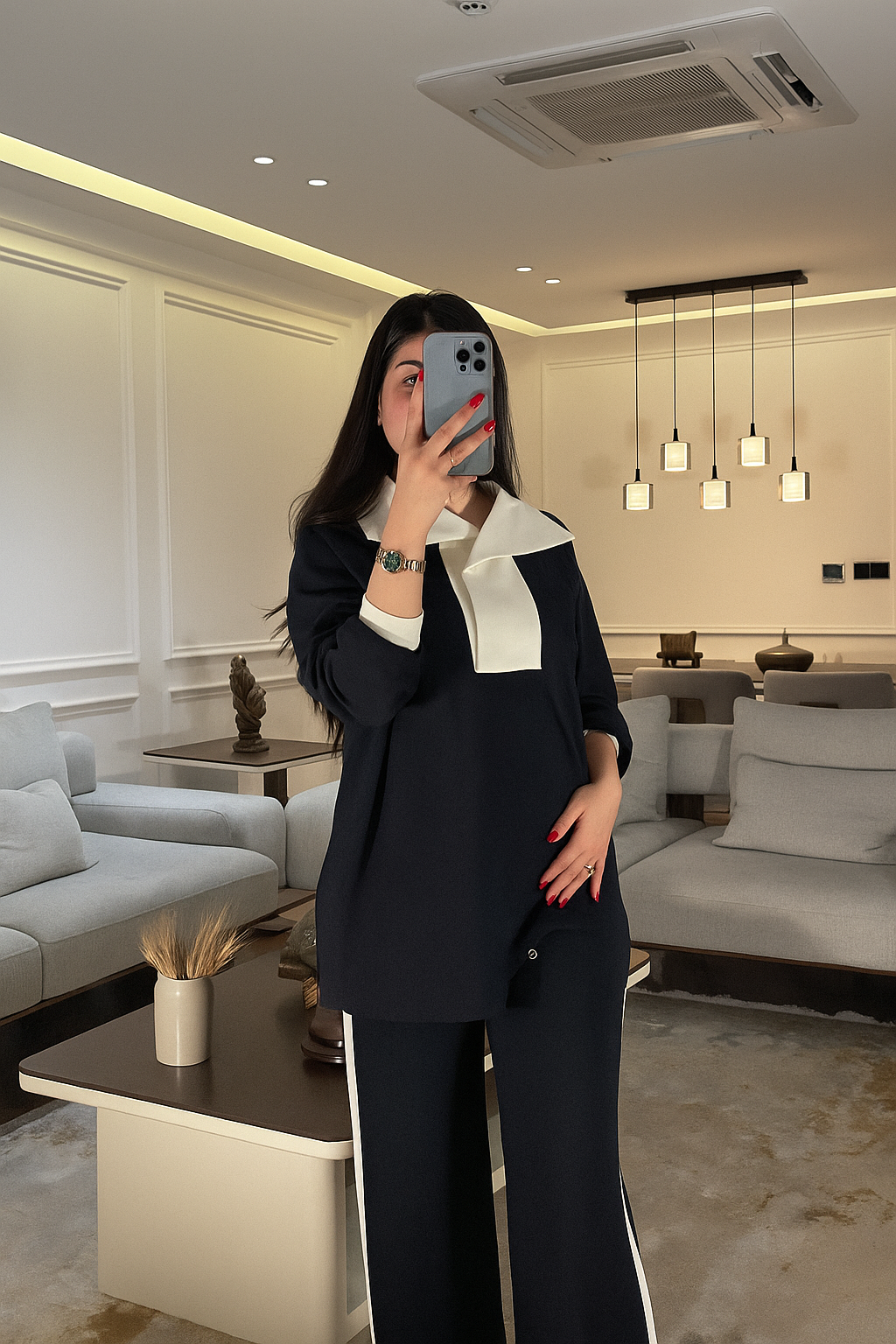 - Design Élégant : Haut à manches longue et pantalon ample pour une silhouette chic et décontractée.