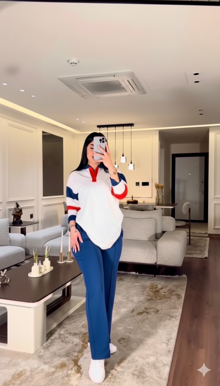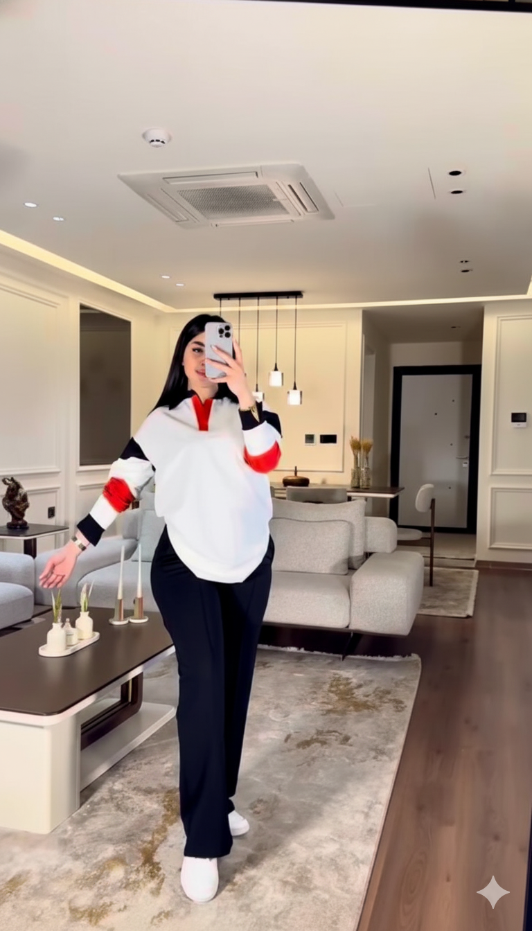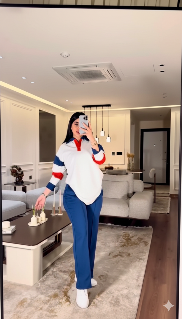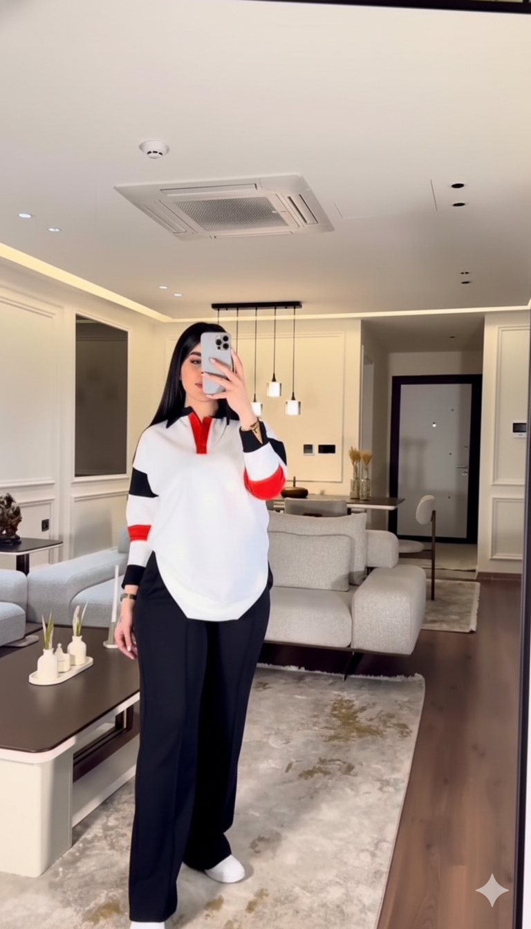 - Design Élégant : Haut à manches longue et pantalon ample pour une silhouette chic et décontractée.